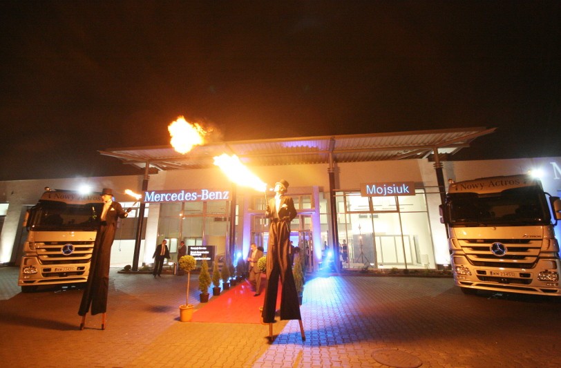 W otwarciu kompleksu serwisowego udział wzięło kilkuset gości - klientów firmy, w tym wielu przedstawicieli firm transportowych i spedycyjnych. Hala serwisu zmieniła się w klub nocny - goście bawili się podczas koncertu Golec uOrkiestry, oglądali pokazy mody w wykonaniu modelek i modeli agencji u.studio, pokazy barmańskie i grali w ruletkę. Podczas otwarcia serwisu premierę miał nowy, ciężarowy mercedes actros. Wieczór poprowadził, z właściwym sobie dystansem i humorem Andrzej Poniedzielski.